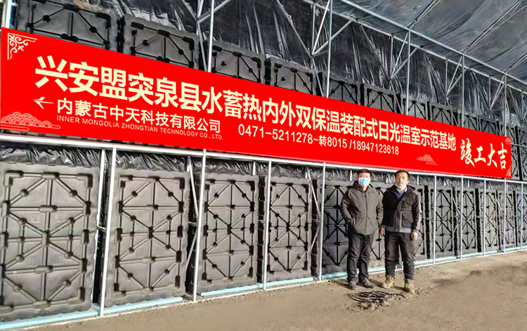 水蓄熱內外雙保溫裝配式日光溫室是由內蒙古農業大學與內蒙古中天科技有限公司聯合研發完成,并已在東北、西北、華北等地區進行了大面積的示范推廣。該溫室集成了10多項國家專利技術,實現了北方寒冷地區冬季不加熱正常生產果菜類蔬菜,對于推動設施蔬菜產業發展及帶動當地農民增收致富有著非常重要的意義,該溫室具備以下特點: